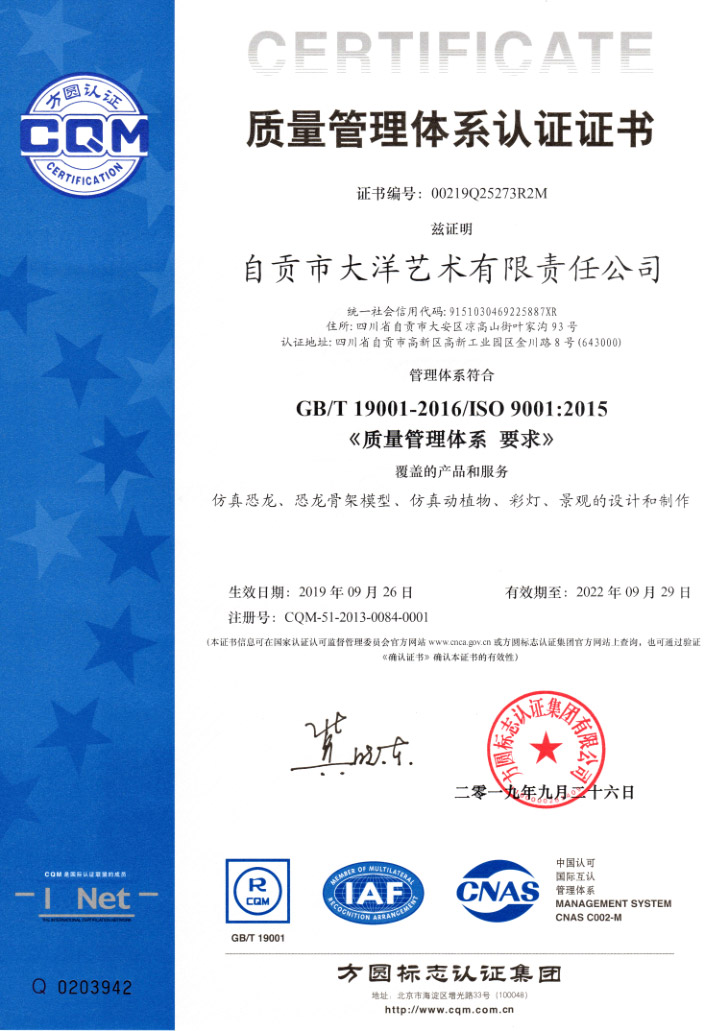 自A市大z艺术有限责d司简介自贡市大洋艺术有限责Q公司Qؓ中国恐龙展品制作基地Q成立于2009q_是专业从事恐龙化石骨架标本模型、仿真活体机器恐龙、仿真雕塑恐龙、玻璃钢恐龙、恐龙游乐场互动讑֤{展品的研制开发、出售和展览的高U技企业。ƈ在中国古生物专家的指gq行开发制作恐龙和仿真动物展品Q所制作的恐龙展品,被中国科学院鉴定为“优UU研作品”,被誉为“侏|纪”的再现者。公司占地面U?0000qxcI有一支专业研制恐龙标本模型和机器恐龙展品的职工队伍和一套具有先q性能的生产设备,q生产能力ؓ500万美元,其中U?0%的出口。我们研制和生的恐龙展品,以其造型逼真、表皮质感强、动作协调自如、组合情节科学、h(hun)格合理、售后服务佳而倍受国内外客L青睐和好评。十多年来,我们先后为美国、加拿大、阿根h(hun)、秘鲁、匈牙利、奥地利、荷兰、澳大利亚和我国的香港、台湑֜Z及北京自然博物馆、天z自然博物馆、上然博物馆、重庆自然博物馆、浙江自然博物馆、成都理工大学博物馆、太原中国煤炭博物馆、内蒙二q浩Ҏ(gu)龙博物馆、武汉中国地质大学博物馆、西峡恐龙蛋博物馆、朝阳鸟化石博物馆、河源恐龙博物馆、常州中华恐龙园、云南禄C界恐龙谷{地区的博物馆和恐龙主题公园以及人民公园制作和提供了相当数量的恐龙展品。同Ӟ先后为重庆恐龙公园、v南恐龙公园、晋江新世纪恐龙公园、番古生物博物馆、东莞古生物博物馆、西峡恐龙蛋博物馆设计和陈列布展?/div>